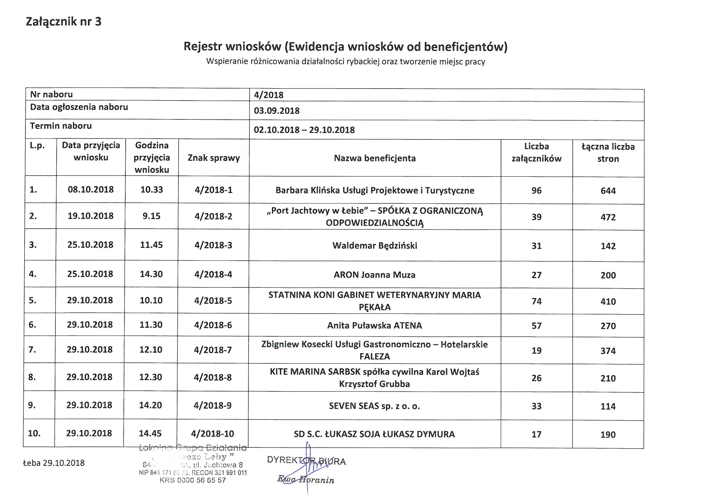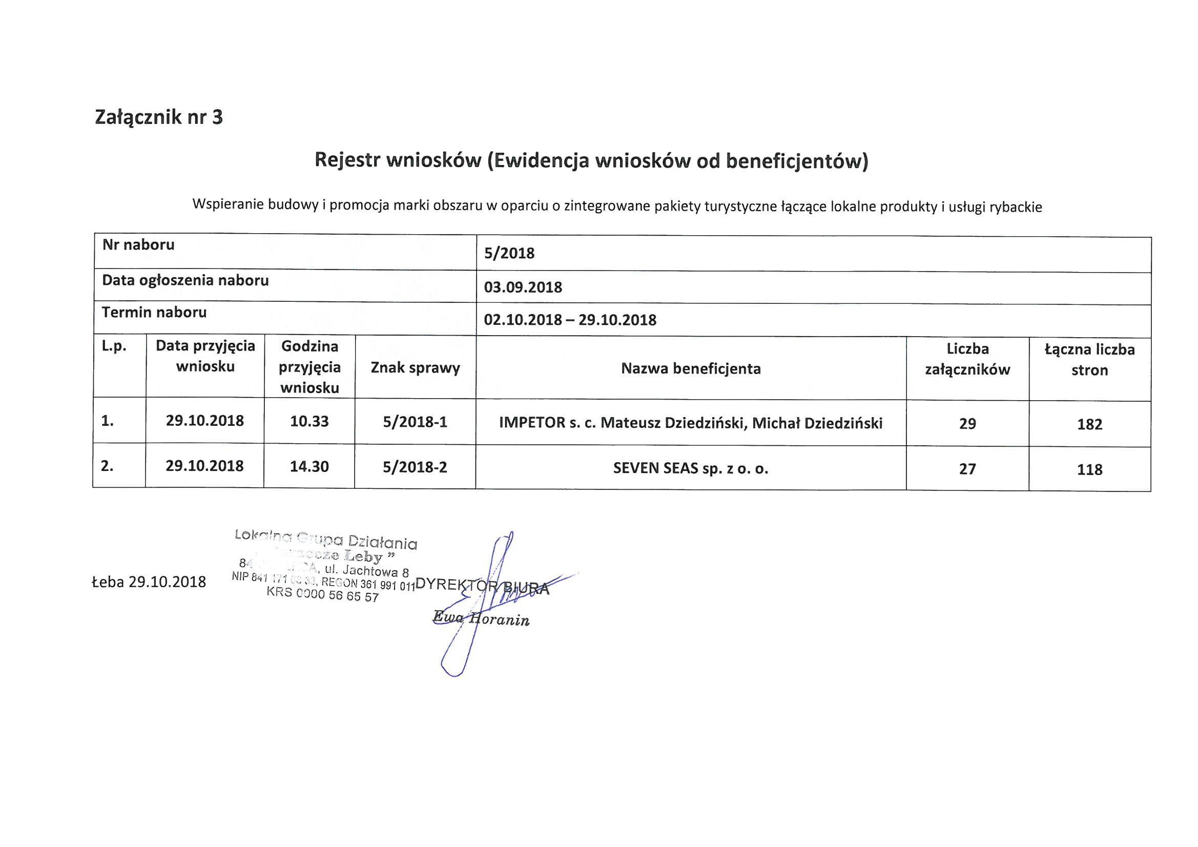 Rejestry złożonych wniosków w ramach konkursów 4/2018 i 5/2018