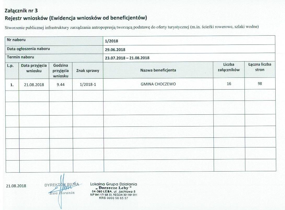 Zarząd Lokalnej Grupy Działania „Dorzecze Łeby” ogłasza następujące nabory wniosków: