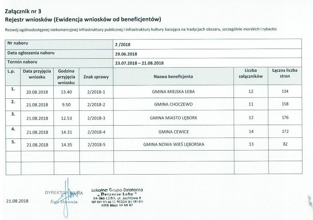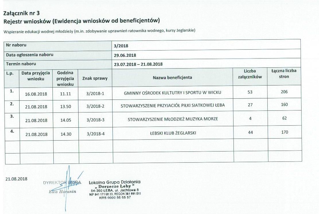 Rejestry złożonych wniosków w ramach konkursów 1/2018, 2/2018/ i 3/2018