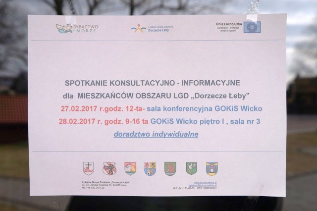 Spotkanie konsultacyjno-informacyjne dla mieszkańców obszaru LGD „Dorzecze Łeby” w Nowej Wsi Lęborskiej" w dniu 15 listopada 2016 roku